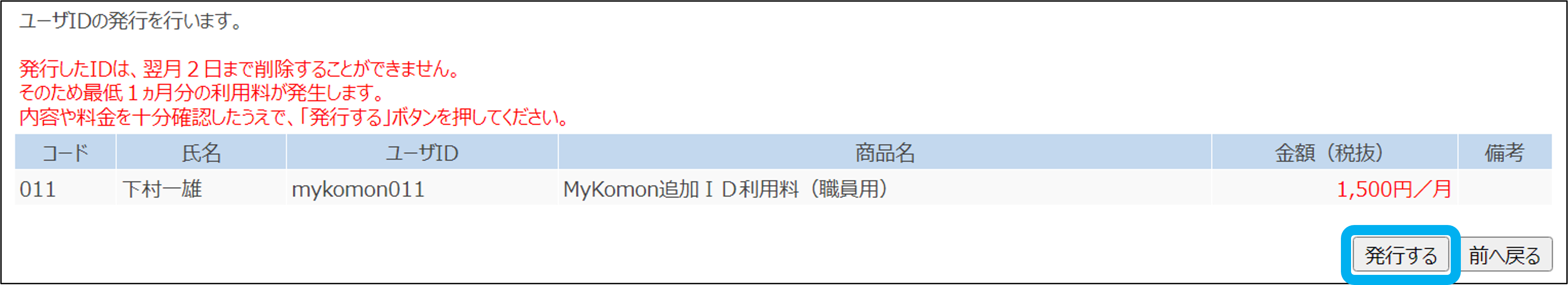 ②IDを発行する職員にチェックを入れ、「ユーザID」を 入力