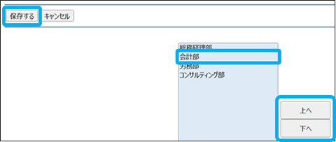 ③所属を選択し、「上へ」「下へ」をクリック