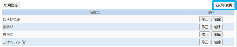 所属の並び替えが完了しました。