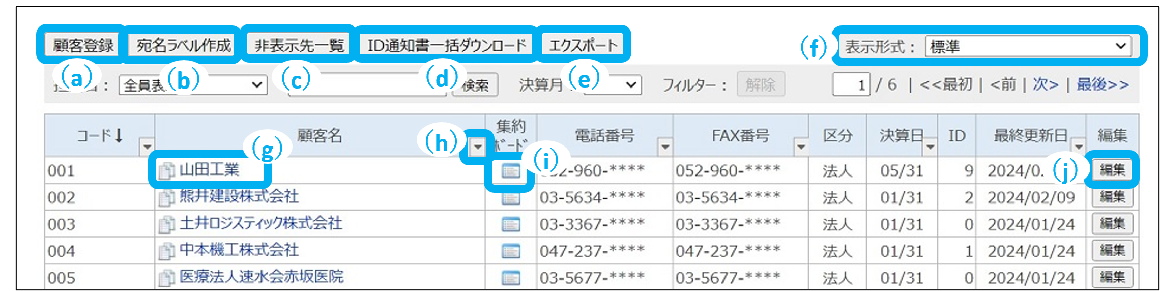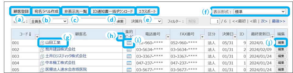 顧客一覧表示設定を「非表示」にした顧客の一覧が表示できます。