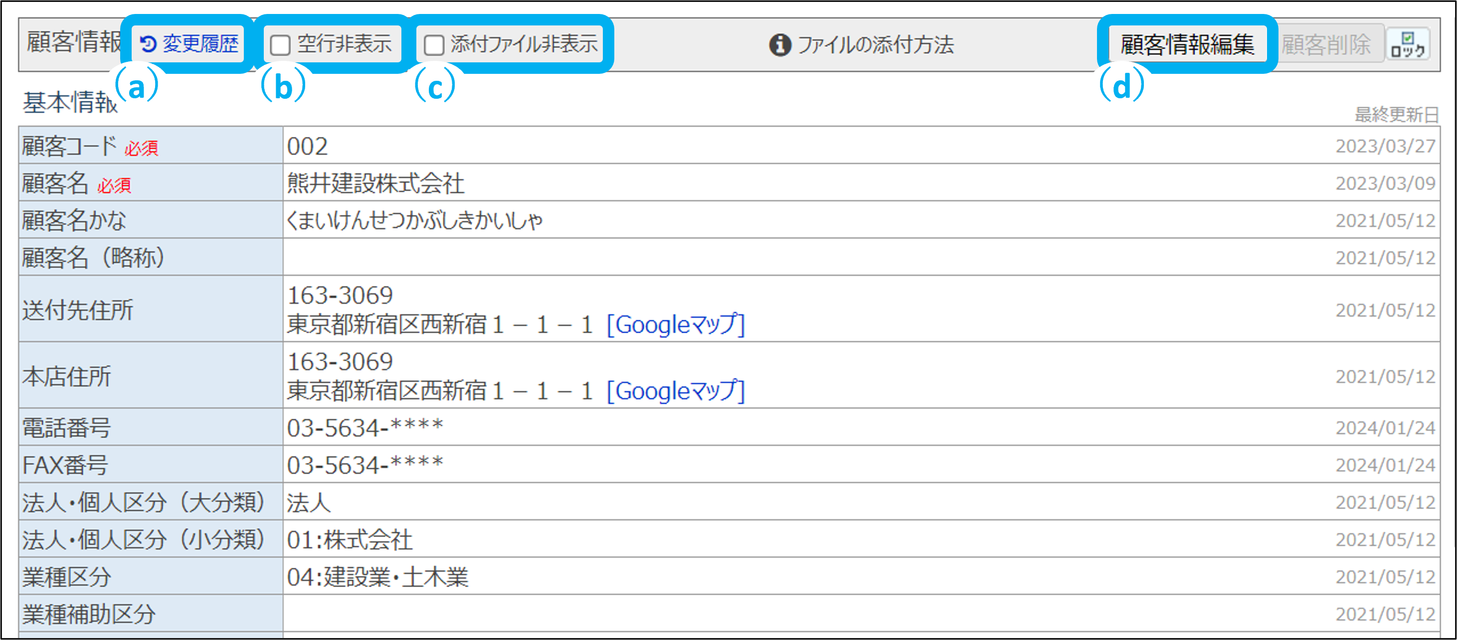 (d)顧客情報編集