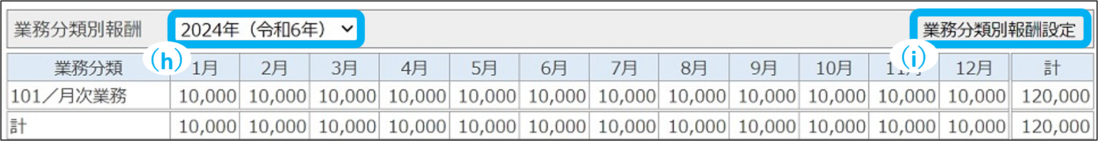 選択した対象年の業務分類別報酬を確認できます。