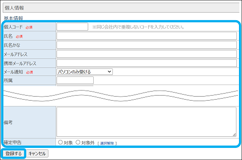 個人情報の登録