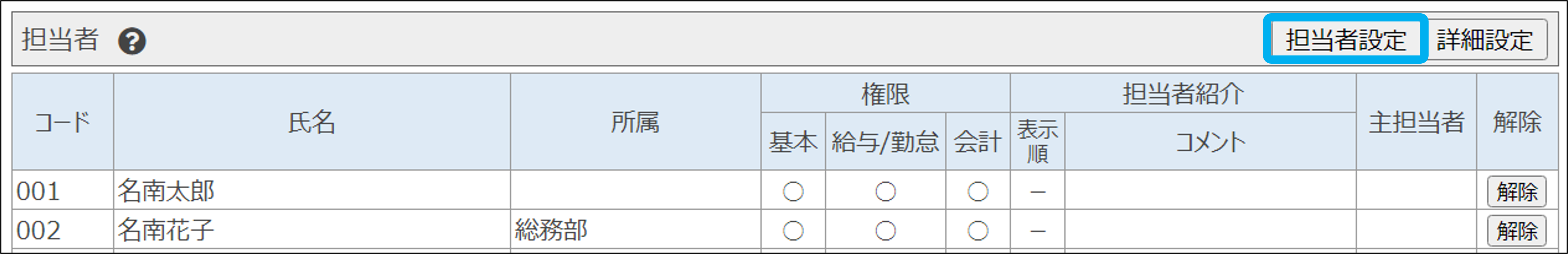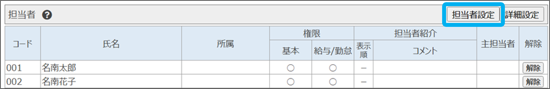 ※担当者設定の一括追加については、担当者設定インポートマニュアルをご覧ください。