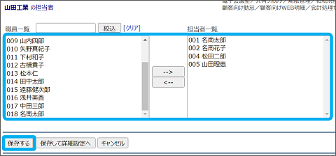 ※一度に複数の担当者を設定する場合は、Ctrlキーを押しながらクリック、もしくはドラッグすると複数選択できます。