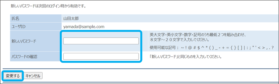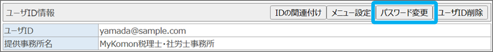 事務所向けの関連マニュアル 事務所管理編 顧客管理編 運用管理・各種設定編 職員向け HOME マニュアル ユーザー別 事務所向け 顧客管理編 顧客IDのパスワード変更 目次 顧客管理編 TOP IT担当者向けマニュアル 顧客管理編 画面紹介 顧客管理TOP 表示形式設定 顧客情報 個人情報 集約ボード 顧客管理設定 権限設定(顧客管理) 表示項目設定 カスタム項目設定 情報の登録・ID発行 顧客情報の登録 個人情報の登録 顧客IDの発行 情報の修正・削除 顧客情報の修正 顧客一覧表示設定 ファイルの追加・削除 業務分類別報酬設定 予定工数設定 担当者設定(顧客情報から) 個人情報の修正 顧客IDのパスワード変更 顧客IDの削除 個人情報の削除 顧客情報の削除 メニュー設定・関連付け メニュー設定 個人の関連付け IDの関連付け オプション設定(勤怠管理・WEB明細) 顧客向け勤怠管理利用設定 顧客向けWEB明細利用設定 顧客向け勤怠管理・WEB明細料金設定 顧客向け勤怠管理・WEB明細利用状況確認 オプション設定(電子・共有) 電子会議室 リアクション通知 電子会議室 閲覧文書コピー 共有フォルダ 閲覧ファイルコピー データ書き出し エクスポート(顧客管理) 宛名ラベル作成 顧客IDのパスワード変更 顧客IDのパスワードが分からなくなった場合、事務所側でパスワードを変更できます。 ①「顧客管理」をクリック ②顧客名をクリック ③氏名をクリック ④「パスワード変更」をクリック ⑤新しいパスワードを入力し、「変更する」をクリック 顧客IDのパスワード変更が完了しました。 このページを印刷する