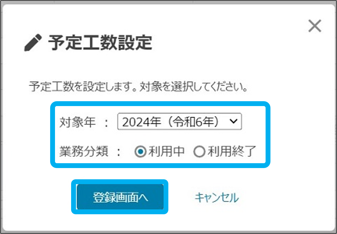 ③「予定工数設定」をクリック