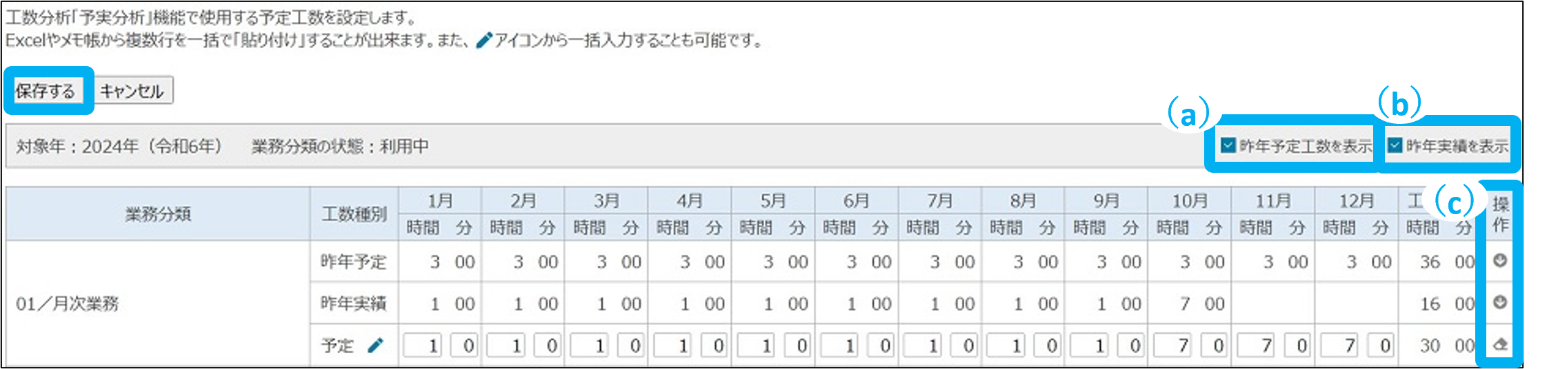 (a)昨年予定工数を表示