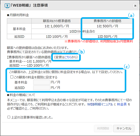詳細は、顧客向け勤怠管理・WEB明細料金設定をご覧ください。