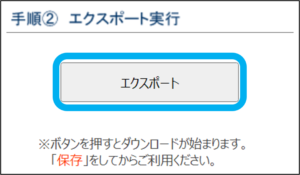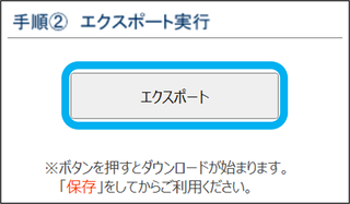 ③「エクスポート」をクリック