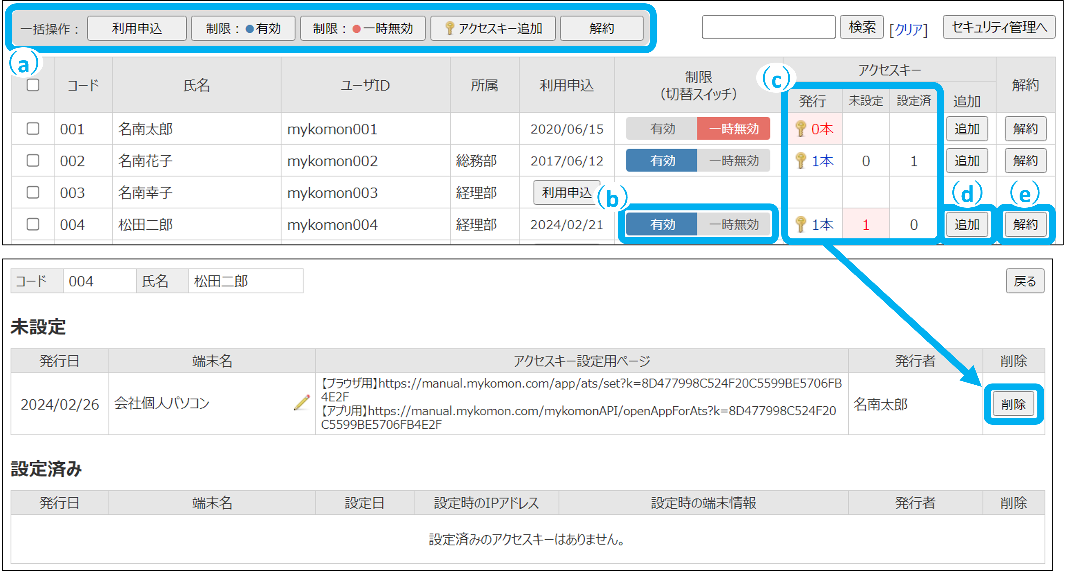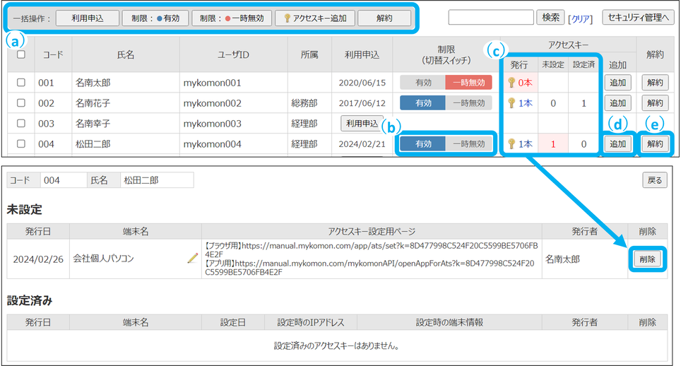 (c)アクセスキー/発行数・設定状況・削除