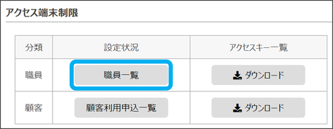 ②アクセス端末制限の「職員一覧」をクリック