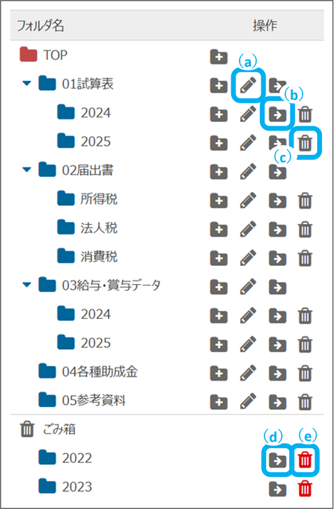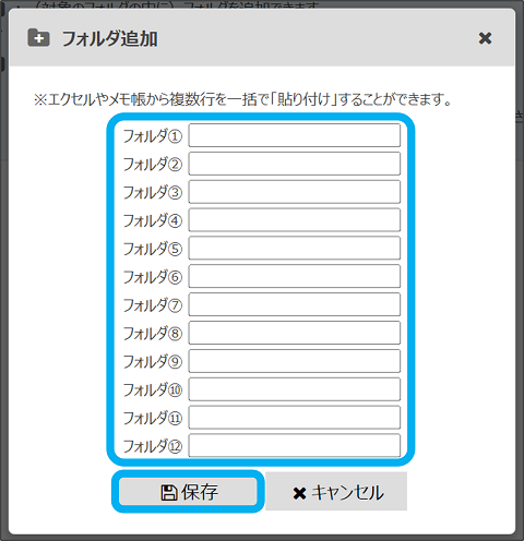 全顧客共通のフォルダ(青色)の、追加・編集・移動・削除ができます。