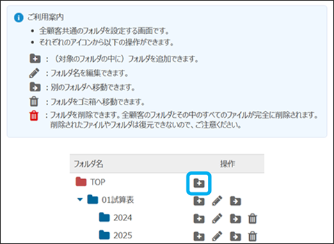 共有フォルダ設定(全顧客共通フォルダ管理)