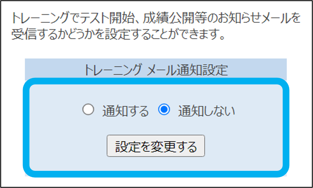 また、テスト開始、成績表公開等のお知らせメールの受信設定もできます。