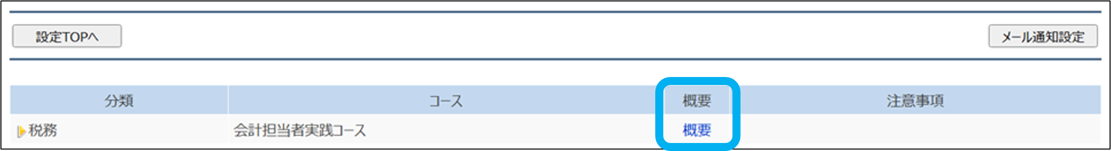 ②「概要」をクリックし、各コースの料金や受講期限を確認