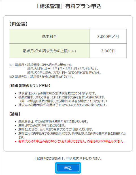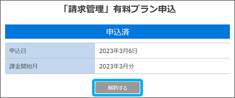 「請求管理」有料プランの申込・解約ができます。
