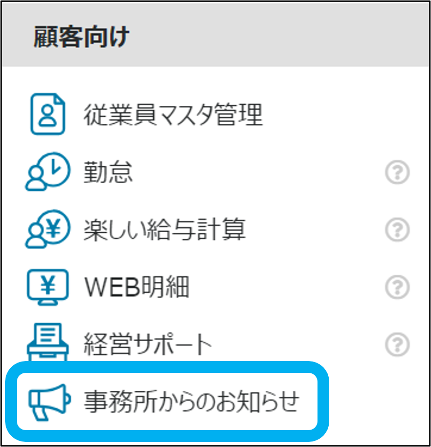 事務所からのお知らせでは、顧客へ情報を一斉配信できます。