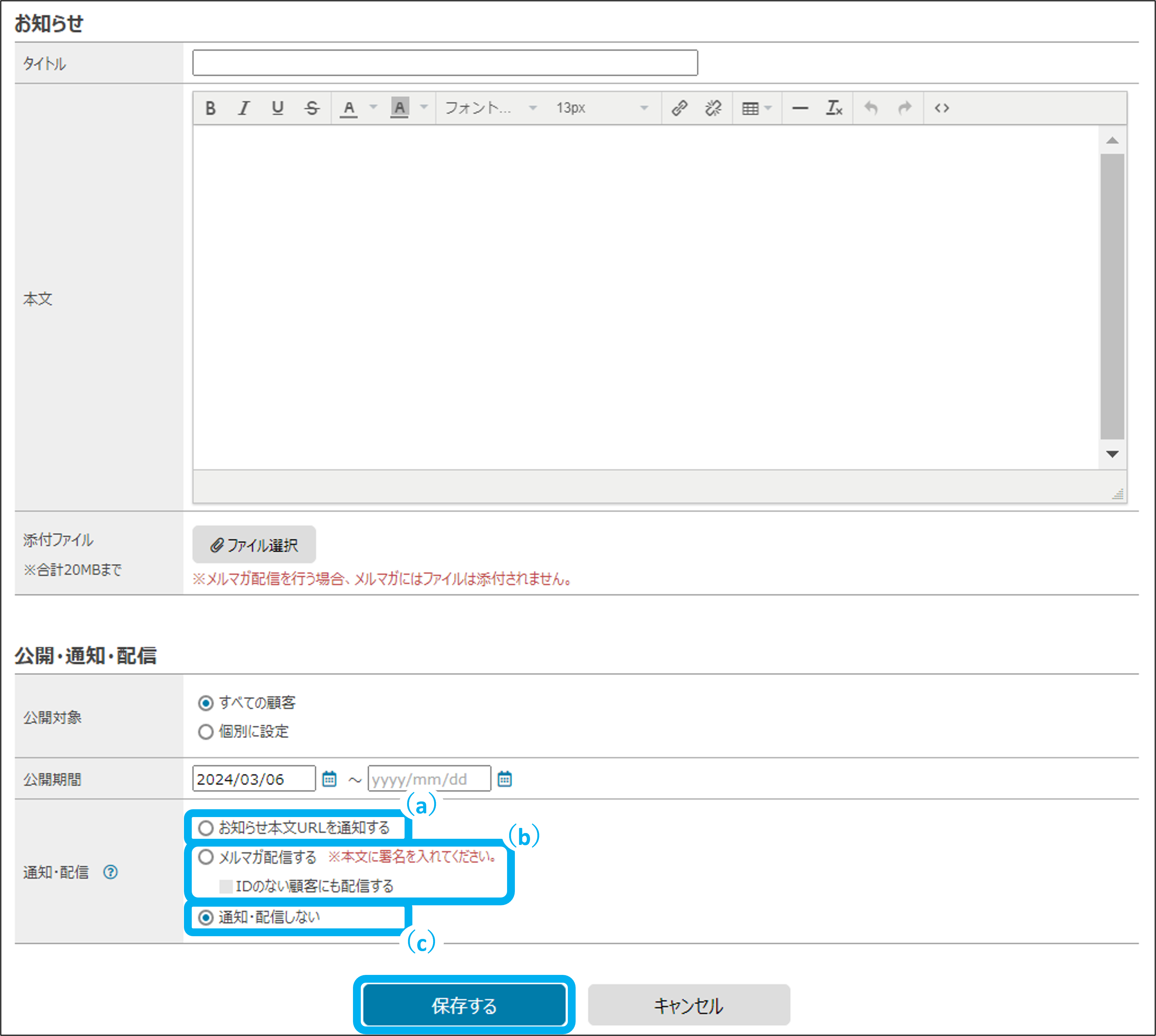 また、通知・配信機能を利用しIDのない個人へメールマガジンの配信をすることもできます。