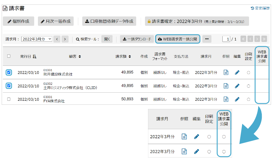 請求管理の紹介 「シンプルで使いやすく」を徹底的に追求した請求管理システム。 売上作成・請求書の発行・入金管理が簡単にできます。 HOME メニュー紹介 所内メニュー 請求管理 ポイント 主な機能の紹介 成功事例の紹介 よくあるご質問 マニュアル 請求管理のポイント すぐに使える簡単設定 請求書WEB公開 口座振替依頼データ 顧客情報を一元管理、グループウェアとも連動 主な機能の紹介 すぐに使える簡単設定 画面上に表示されるナビに沿って初期設定すればすぐに利用できます。 請求書WEB公開 MyKomon内で請求書を顧客へ公開できます。 口座振替依頼データ 口座振替依頼データの作成・口座振替結果データの登録ができます。 日本システム収納・三菱UFJファクターに対応しています。 顧客情報を一元管理、グループウェアとも連動 顧客情報に紐づけて請求情報を登録できます。 売上を各顧客の報酬に転記できるので、報酬登録の手間が省け、簡単に工数分析ができます。 成功事例の紹介 CASE. 請求業務の手間が大幅に削減! もともとExcelでの管理・請求書作成で膨大な時間がかかっていた MyKomon上の報酬設定に入れている額と別作成しているExcelが一致しているか照らし合わせて請求作成していました。また、繁忙期はスポット請求が多くなるので、スポット業務と請求作業が重なり、作成も大変でした。入金管理も手作業で消し込んでいたので、ミスの心配がありました。未収となっていたことに気づくのが遅れ、顧客訪問時に伝えることができずにズルズルと売掛になってしまうことも多かったです。 定額・スポット報酬共にすべて一元管理 Excel管理を無くすことができました。報酬設定への請求額転記機能もあり、二度手間なく入金管理ができるようになりました。事務所が一番多忙な時期の請求業務が自動化されてかなり楽になりました。また、収納代行会社との連携もできるので、振替依頼、入金状況の管理、未収の洗い出しがほぼ自動化されました。未収発生時も、適切なタイミングで顧客に伝えることができ、随分売掛も解消されました。 請求管理のよくあるご質問 Q. 複数の売上を1枚の請求書にまとめて表示させることはできますか? Q. 請求書の個別作成をするときにチェックボックスが表示されません。 Q. 売上の値引きがある場合どのようにしたらいいですか? Q. 顧客から過入金があった場合どのようにしたらいいですか? Q. 個別作成と月次一括作成の違いは何ですか? Q. 「報酬から作成した売上の取消」ボタンが表示されて、今月の売上を作成できません。 Q. 請求書の宛名が「御中」になってしまいます。「様」に変更できますか? Q. 未収額を請求書に載せることはできますか? Q. 請求管理はインボイスに対応していますか? Q. 請求管理を使ってみたいです。 もっとみる 請求管理のマニュアル ダウンロードする 請求管理を活用してさらに効率アップ 2025年11月01日 2025年09月01日 2025年06月01日 請求管理を使用されている方へおすすめのメニュー 報酬管理 顧客管理 工数分析 電子会議室 お問い合わせはこちら 移転、事務所名変更などの情報変更もこちらからご依頼ください。 お問い合わせはこちら 情報変更依頼はこちら
