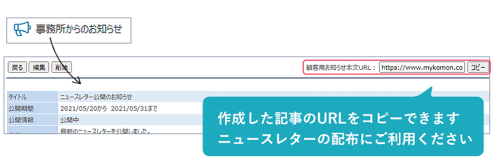 作成したお知らせのURLをボタン1つでコピーできるようになりました。