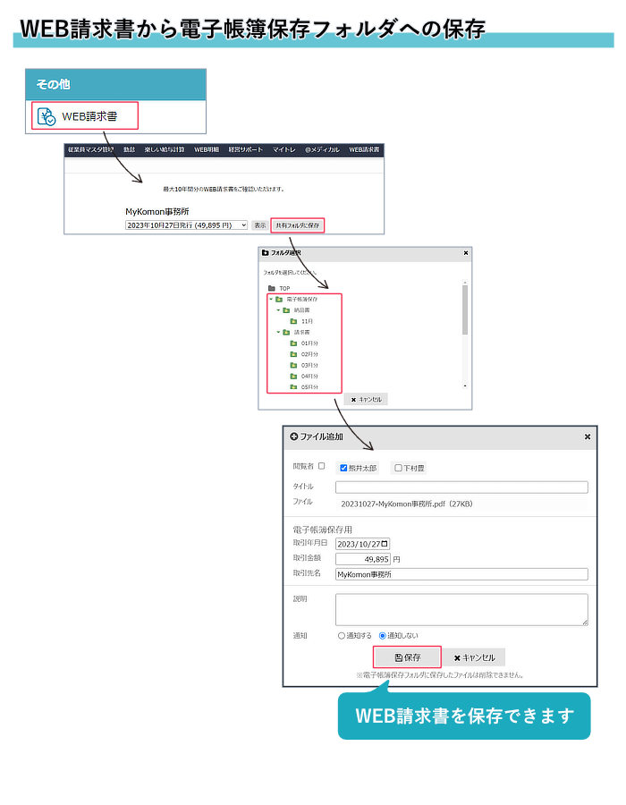 2)WEB請求書をダウンロードせずに、電子帳簿保存フォルダに保存できるようになりました!