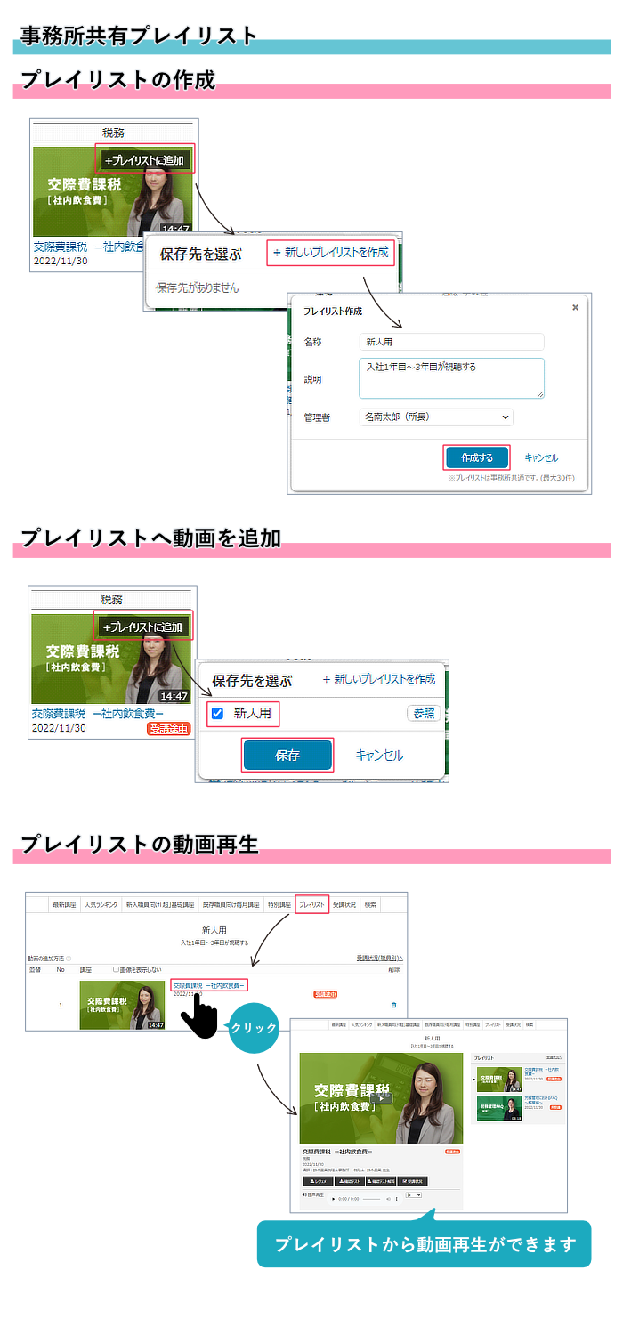 1)事務所共有プレイリストが作成できるようになりました。