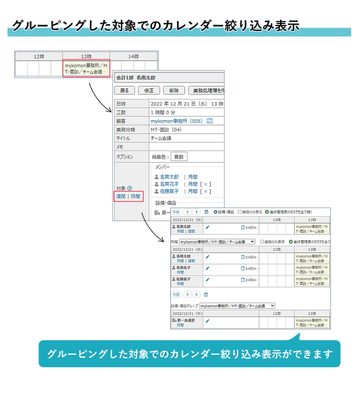 設備・備品のみに絞り込んで週間、日間カレンダーを表示できるようになりました。
