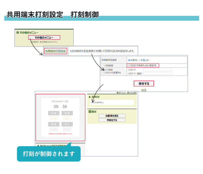 1)打刻を共用端末からのみに限定することができるようになりました。