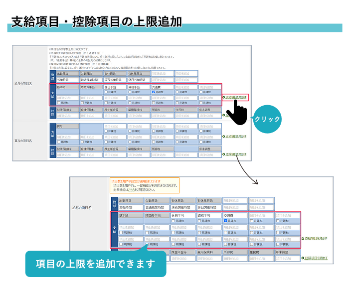 支給項目・控除項目を、各7項目ずつ追加できるようになりました。