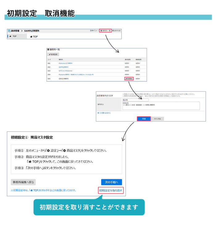 報酬管理を既に利用している状態で、誤って初期設定を始めた場合設定を取り消すことができます。