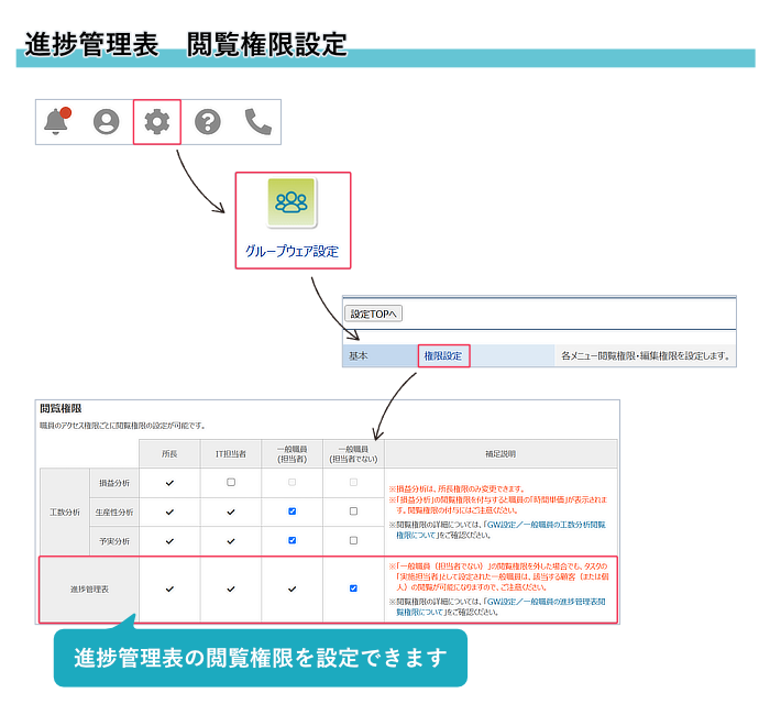2)進捗管理表の閲覧権限を設定できるようになりました。